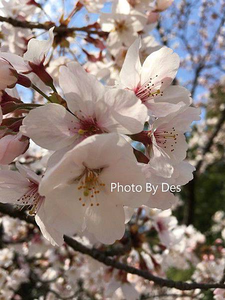 因為這是咱們賞櫻以來第一次看到的粉色櫻花,而且是盛開的