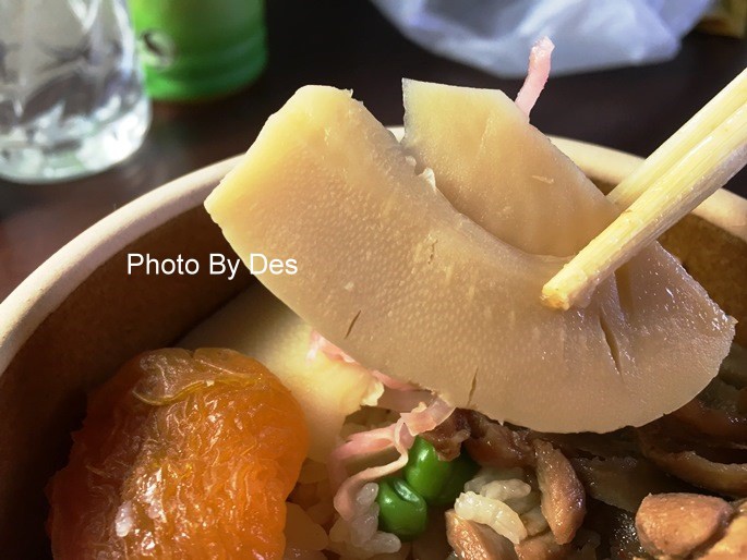 它的米飯有先調味蒸煮過,光吃這個飯就很有味道