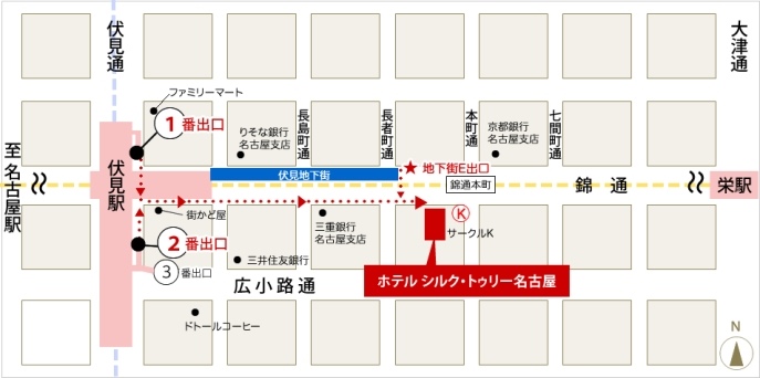 所以說飯店剛好就在「伏見駅」與「榮駅」的中間處(但是距離伏見比較近一些)