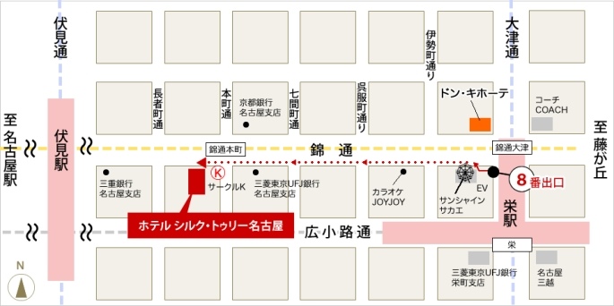 地下鐵「榮駅」8號出口,徒步4分鐘