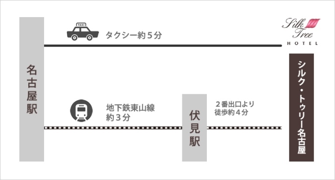 「絲綢樹飯店(Hotel Silk Tree)」位於「伏見駅」徒步4分鐘左右即可到達