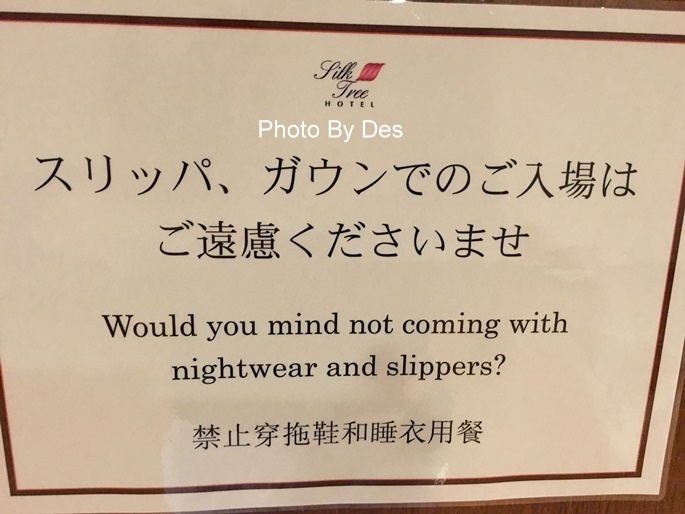 若是抽菸的人必須在飯店門口旁吸菸專區抽菸(日本人沒有在邊走邊抽的~那是不禮貌的行為)