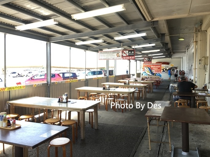 「泡瀨漁港 パヤオ直売店」的外面,有不少客席