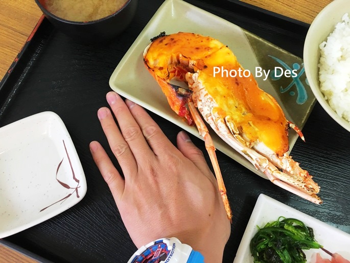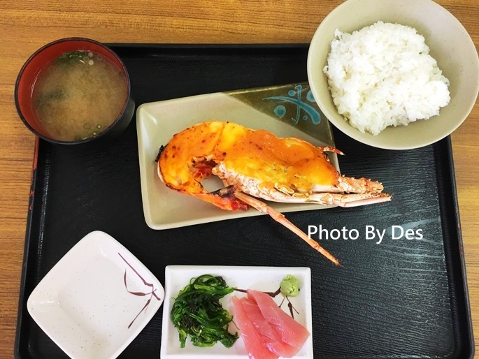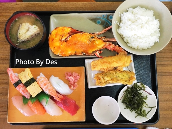 全隻(切2半)龍蝦含生魚片的定食要5,300日幣,折台幣約1,643元