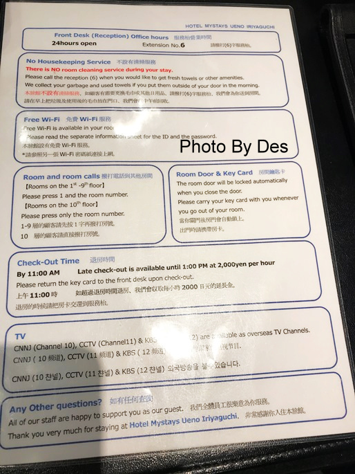 此外,櫃台人員再拿出一張飯店規則給咱們看
