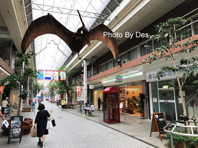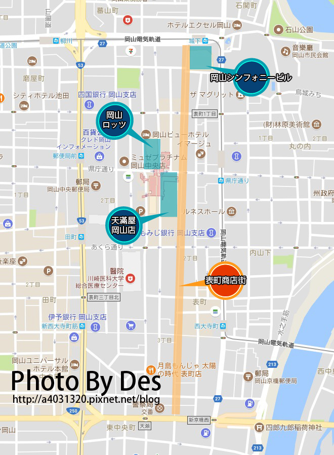 像咱們是直接搭乘「岡山電軌(路面電車) 」到「県庁通り駅」(商店街的中間處)
