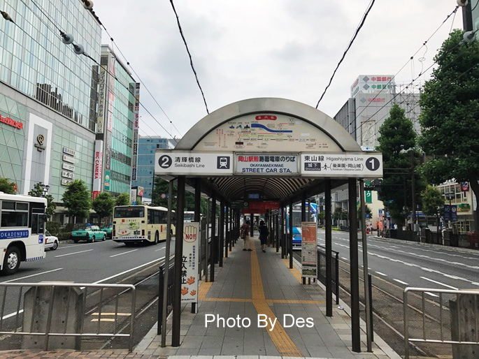 但是很建議搭乘「岡山電軌(路面電車) 」,因為單程只要100日幣即可到達(剛好在100日幣區間內)