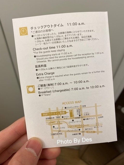 卡套背面則是入住與退房時間資訊