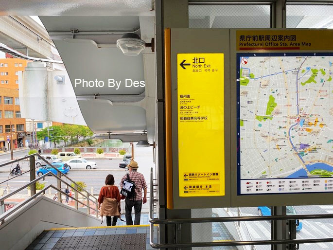 走出車站往「北口」方向的樓梯走下去(往福州園、波の上ビーチ方向)